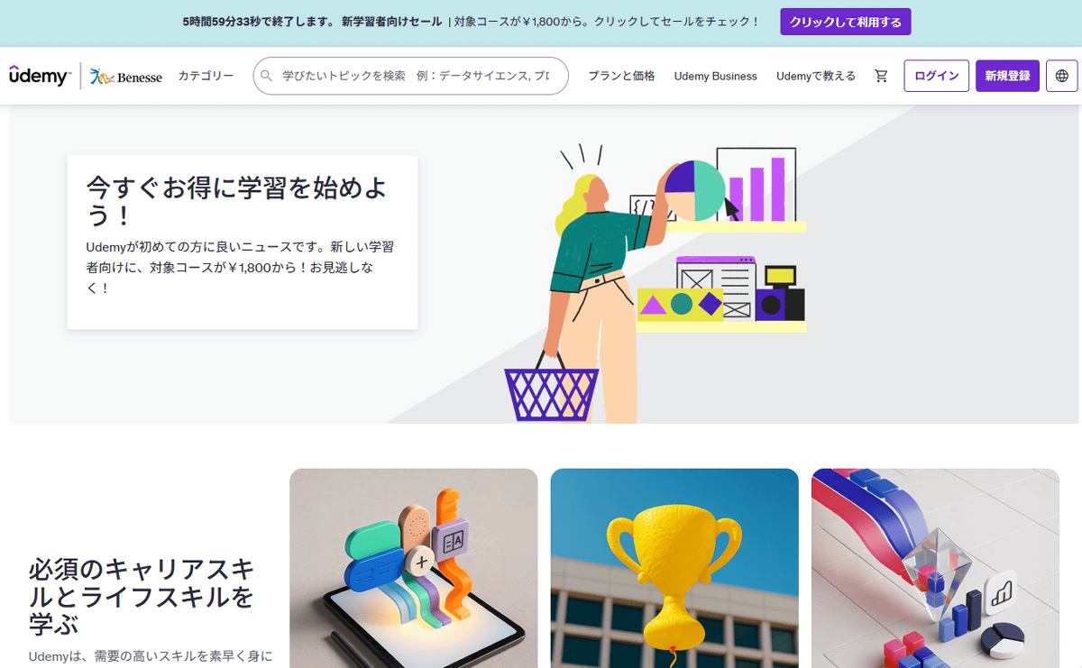 UdemyもCourseraと同様のオンライン講座プラットフォームですが、Udemyの講座は動画が中心で、プログラミングやゲーム開発だけでなく料理やプレゼンテーションなど多種多様な講座がラインナップされているのが特徴です。