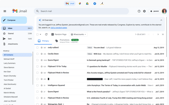 公開されたエプスタイン・ファイルのメールをGmailっぽいUIで閲覧できる「Jmail」