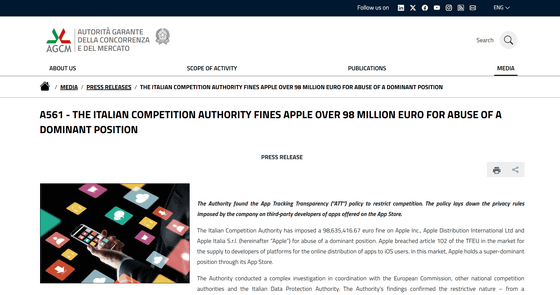 AGCMは2023年5月から調査を行った上で、Appleが2021年4月のiOS 14.5から導入したApp Tracking Transparency(ATT)が競争を制限する性質を持っていると主張しています。