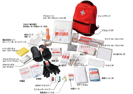 防災士の資格を持つ担当者が作ったという、災害時に必要なものを取りまとめた防災グッズ30点セットです。山善から提供してもらいました。