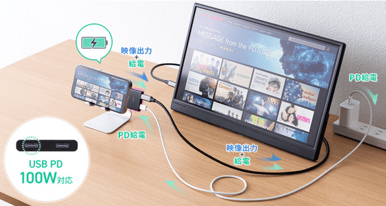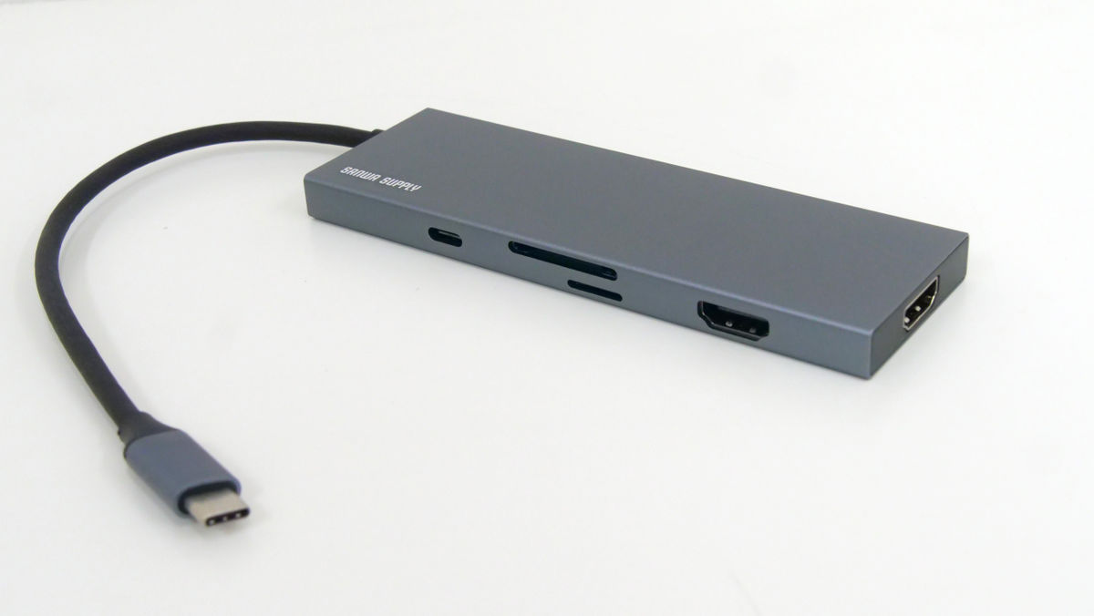 USB Type-Cポートを拡張するアダプタです。映像出力に対応するデバイスにつないで映像出力を行うことができます。サンワサプライから提供してもらいました。