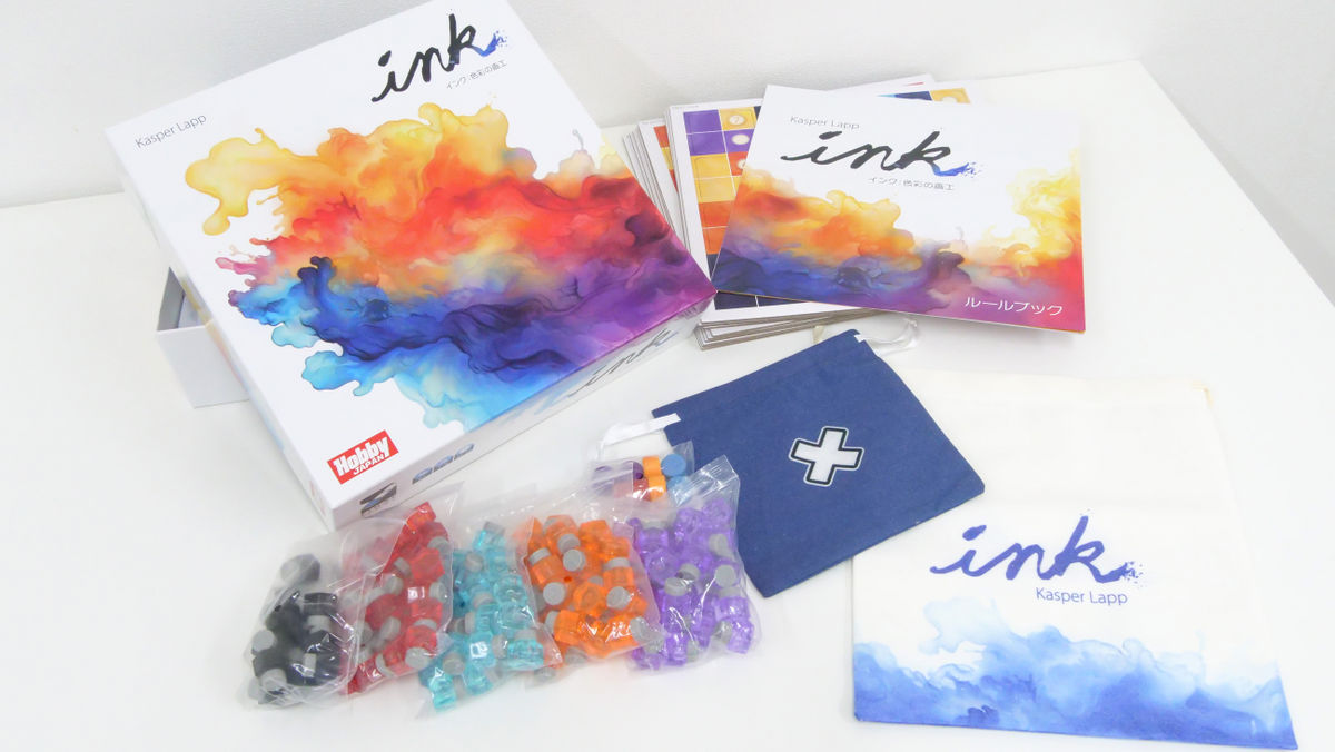 「インク」を使い自分の「絵画」を広げて「インク瓶」を置いていき、最終的にすべてのインク瓶を絵画上に配置したプレイヤーが勝者となるリソース管理型ボードゲームです。プレイ時間は約30-45分、プレイ人数は1-4人、対象年齢は8歳以上。ホビージャパンから提供してもらいました。
