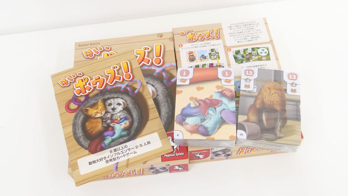 動物をテーマにしたカードゲームです。ホビージャパンから提供してもらいました。プレイヤーは動物が大好きなインフルエンサーになりきり、肉球が描かれたカードを手札から出してポイントを稼ぎます。プレイ時間は約15-30分、プレイ人数は2-5人、対象年齢は8歳以上です。