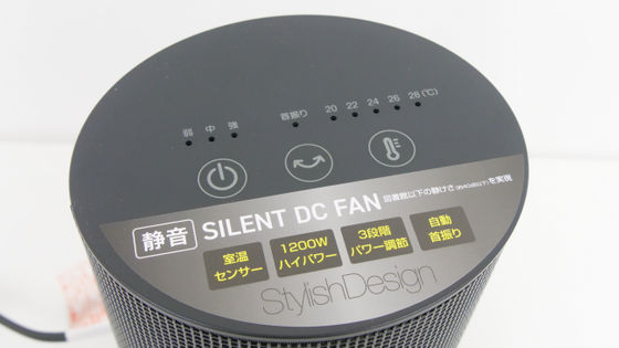 天面にタッチ式のボタンが付いていて、温風モード(弱/中/強)、首振り、温度設定などを調整できます。