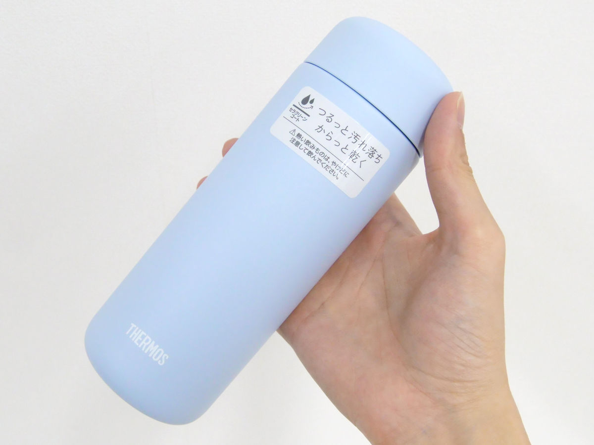 サーモスのケータイマグにおいて初めて水筒内面にセラミック加工を施した「セラクリーンコート」を採用しており、汚れが落ちやすく乾きやすい特長を持っているとのことです。
