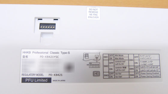 裏面に制御キーの割り当てを変更できる「DIPスイッチ」があるのが特徴。専用のソフトウェアを使用したキーマップカスタマイズにも対応しています。