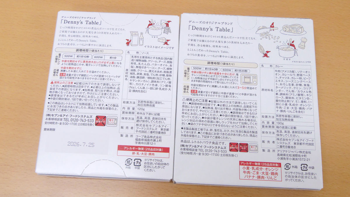 レンジでチンするだけで「デニーズ」の料理を味わえるレトルト食品、2種セットです。