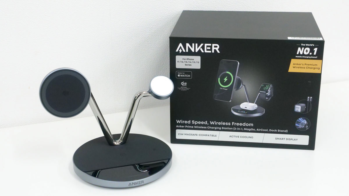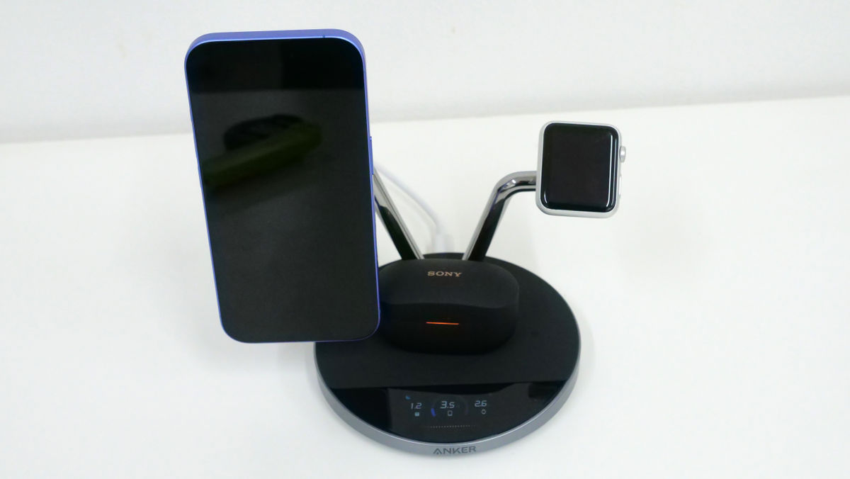マグネット式ワイヤレス充電、Apple Watch用ワイヤレス充電、ワイヤレス充電の3つを同時に利用できるワイヤレス充電器です。Ankerから提供してもらいました。