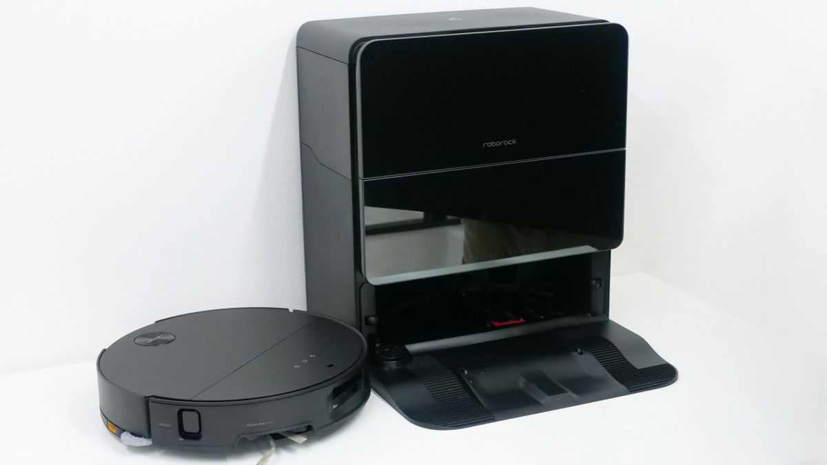 Roborockから提供してもらったロボット掃除機です。本体高7.98cmの「薄型デザイン」が特徴で、四隅を検知して自動で伸びるサイドブラシや壁際0.51㎜まで近づいて水拭きを行う壁キワ用モップを搭載。本体を収納するドックはゴミ収集、モップの洗浄や乾燥、給水、洗剤の投入、高速充電などを行えます。