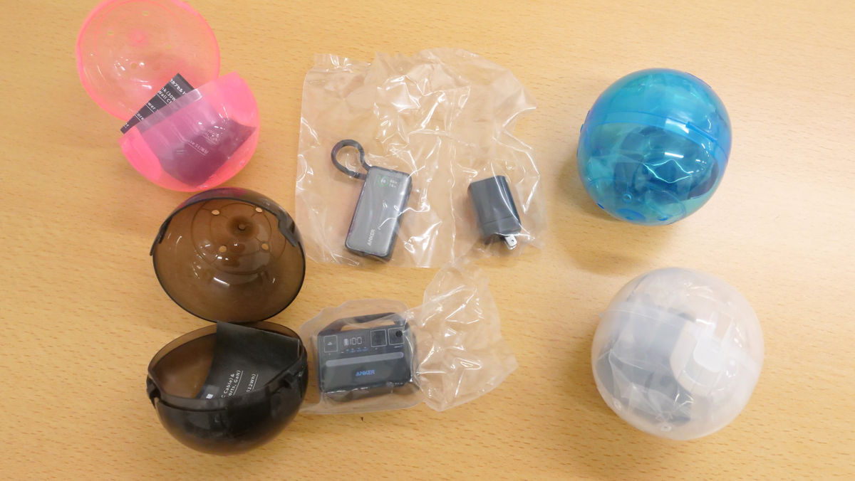 Ankerの6製品をミニチュアで再現した「Anker ミニチュアコレクション」です。2024年6月より全国のガシャポン自販機シリーズで展開されている品。Ankerから提供してもらいました。