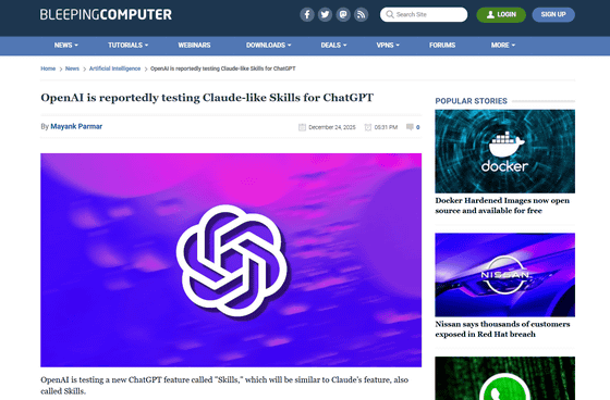 OpenAIはChatGPT向けにClaudeのSkillsに似た機能をテストしている