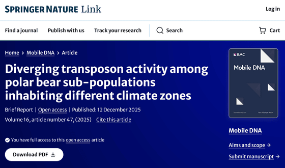 温暖化の影響によりホッキョクグマの3分の2が2050年までに絶滅すると予測されていますが、イギリスのイースト・アングリア大学の研究者らが2025年12月に発表した研究では、ホッキョクグマが地球温暖化という環境ストレスに対応するため、ホッキョクグマの遺伝子発現の制御に関わる要素が変化している可能性が示されました。気候変動に遺伝子レベルで適応する高い能力を持つことで、将来の絶滅リスク評価にも影響を与える可能性があります。