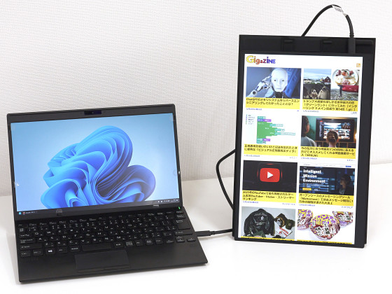 「VAIO Vision+ 14」は14インチ以上で世界最軽量のモバイルディスプレイで、電源コード不要でUSBケーブル1本で接続するだけで使うことができます。そんなVAIO Vision+ 14をGIGAZINEのプレゼント企画のために提供してもらえたので、外観や機能をチェックしてみました。