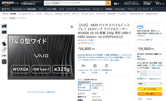 VAIO Vision+ 14はAmazon.co.jpで税込5万4800円で入手できます。