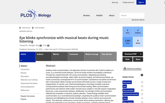 中国科学院のイー・ドゥ氏らは、聴覚と運動の神経回路のつながりをより深く分析するために、まばたきが音楽と同期するのかどうかを調査しました。