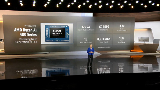 2026年1月6日にAMDのリサ・スーCEOが世界最大級の家電見本市「CES 2026」の基調講演を実施し、PC向けプロセッサの「Ryzen AI 400シリーズ」やAIデータセンター向けGPU「MI455X」などの製品を発表しました。