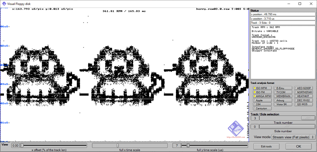 pbm2trackではピクセルアートを描画するために、フロッピーディスクの磁気ディスクと、エラーをチェックする方法である「track timing diagrams(トラックタイミングダイアグラム)」を利用しています。