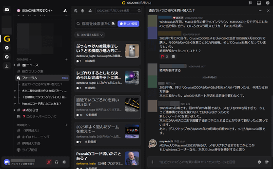 なお、GIGAZINEもDiscordに公式サーバーを設置していて、新着ニュースの即時配信を実施しています。さらに、記事に関する話題を語り合えるフォーラムも設置しているので、以下のリンク先を参考にサーバーに参加してください!