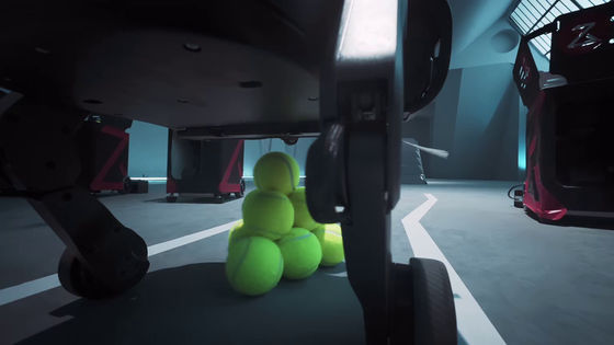 車輪脚を伸ばした状態で走行しながら、テニスボールをぶつけられまくる「Roborock Saros Rover」。車輪脚を伸ばした状態で走行しても、多少の衝撃はものともしないというわけ。