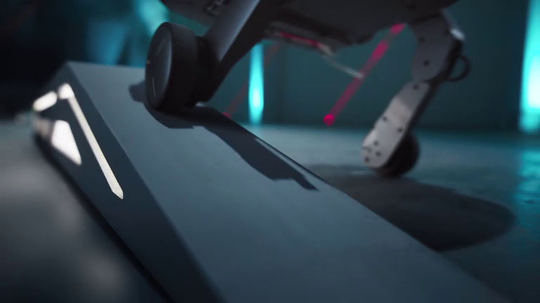 これで段差の移動は完了。車輪脚がちょうど本体中央辺りに配置されているので、本体の半分ほどの奥行きがある階段なら、「Roborock Saros Rover」を使えそうです。