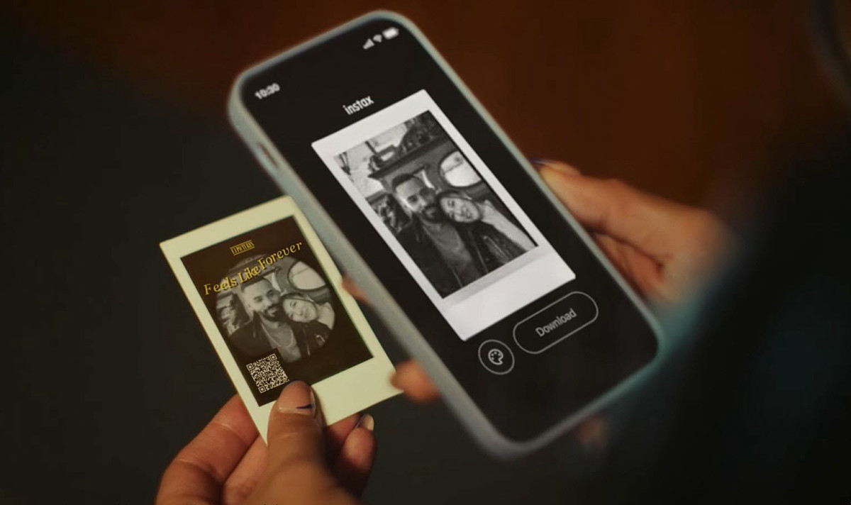 「動画の1シーン」と「動画にアクセスできるQRコード」をチェキ用フィルムに印刷できます。