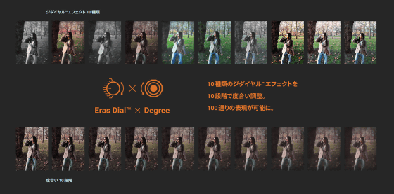 10種類のエフェクトの効き具合を10段階で調整可能なので、合計100種類の効果を楽しめます。