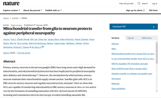 今回、デューク大学医学部のトランスレーショナル疼痛医学センター局長を務めるルー・ロン・ジー教授らの研究チームは、「後根神経節の神経線維を取り囲んでいるサテライトグリア細胞という末梢(まっしょう)神経系の細胞が、ミトコンドリアを神経線維の末端に直接輸送しているのではないか」との仮説を立てて実験しました。