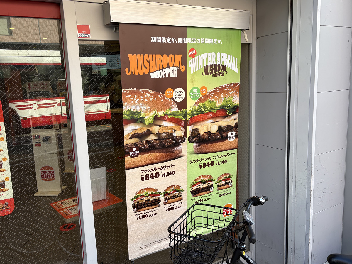単品価格は「ウィンタースペシャル マッシュルームワッパー」が税込840円、「ウィンタースペシャル ダブルマッシュルームワッパー」が税込1190円、「ウィンタースペシャル マッシュルームワッパー Jr.」が税込540円です。