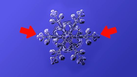 雪の結晶の形状は、成長中の気温や温度といったさまざまな要因に左右されます。しかし、1つの結晶から伸びる枝の両端でこれらの要因が異なることはほとんどないため、結晶の両端は同じように成長するとのこと。しかし、個々の雪の結晶はその環境や軌道などがそれぞれ異なるため、同じ形状の雪の結晶は存在しないというわけです。