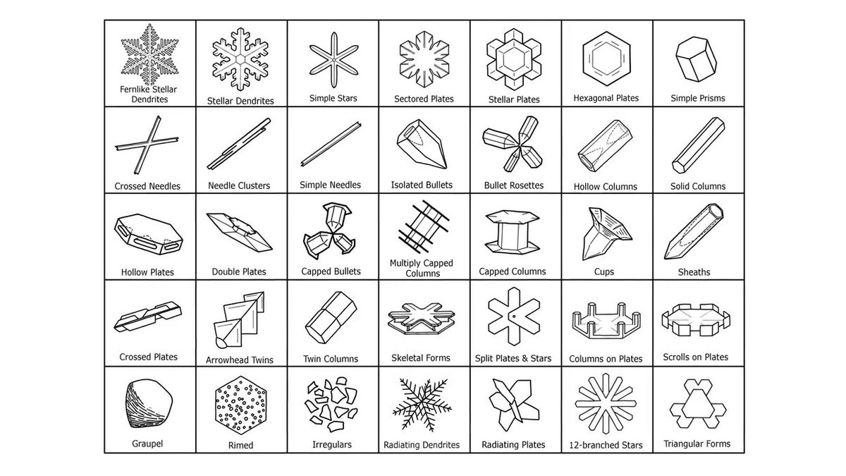 1930年代、日本の研究者である中谷宇吉郎は温度や過飽和度などの条件によって、雪の結晶の形状が異なることを発見しました。