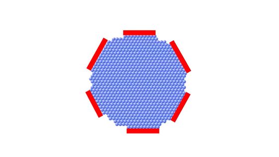 水分子が集まった結晶には、分子が平滑に並ぶ「ファセット面」という面ができます。こうした結晶に新たな分子が衝突する際は、ファセット面にはくっつかずにざらざらした面にくっつきやすいとのこと。そのため、時間経過とともに結晶のざらざらした面は新たな分子によって埋められ、六角形を維持したまま大きくなっていくというわけです。