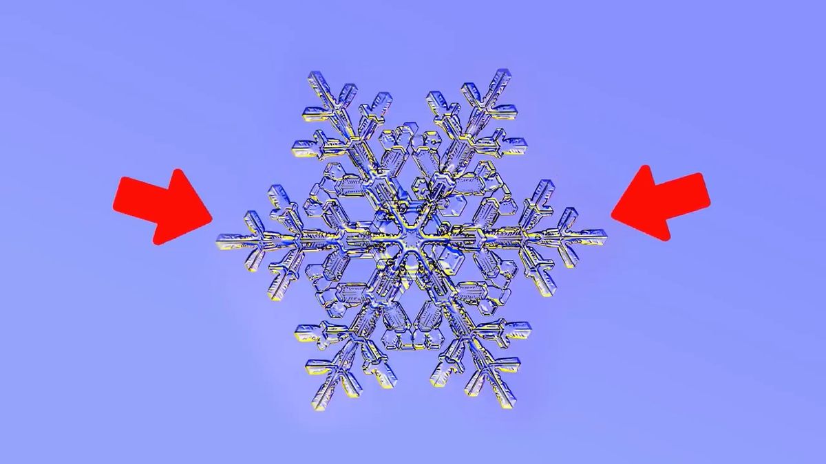 そして雪の結晶はすべて六角形を中心に対称的に成長し、反対側の枝は同じ形状になります。