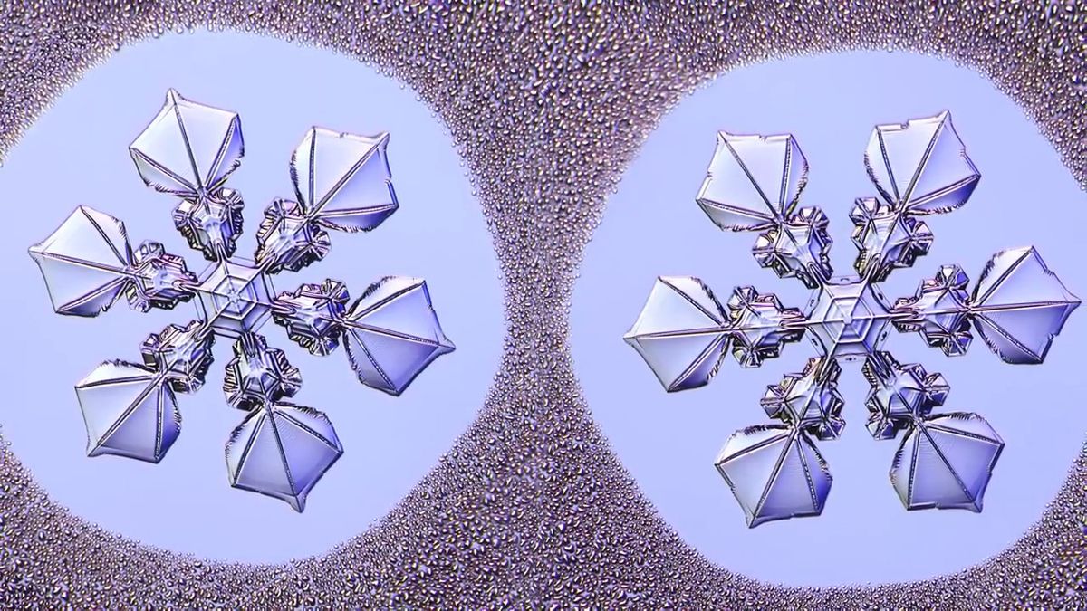 なお、実験室では雪の結晶が成長する際の条件を細かく制御できるので、理論上はまったく同じ形状の雪の結晶を作ることが可能です。リブレヒト氏の研究室では微細なサファイアの結晶を舞い散らせ、それを核として雪の結晶を作成しています。