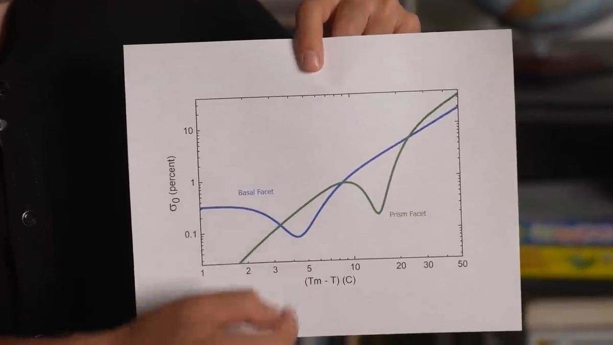 またリブレヒト氏は、長らく謎だった「なぜ雪の結晶はナカヤ・ダイアグラムの通りの形状になるのか?」という疑問の答えも見つけています。リブレヒト氏の理論は、「氷の核生成における障壁(核生成障壁)」が関係しているというもの。核生成障壁とは、分子が集まって結晶が成長するために必要なエネルギーのことで、たとえば平らな面は核生成障壁が大きいため、その上に結晶が成長するのが困難です。