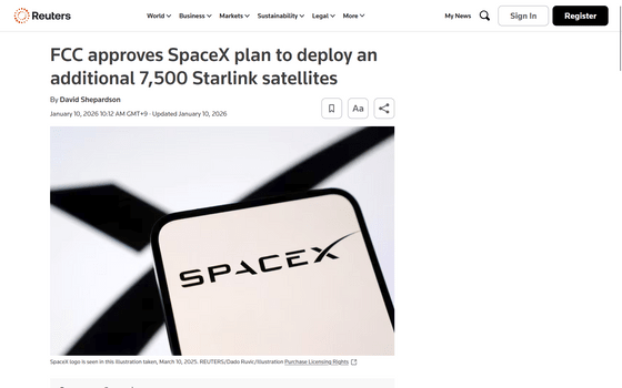 アメリカの連邦通信委員会(FCC)が、衛星インターネットサービスを展開するStarlinkが提出した「(PDFファイル)第2世代衛星」と呼ばれる製品群を7500基打ち上げるという計画を承認したことが分かりました。