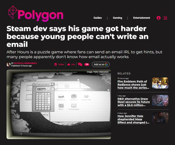 マルメヘッド氏によると、近年の「After Hours」のクリア率は低下しているそうです。マルメヘッド氏は「メールの書き方がおかしなことがクリア率低下の原因だと思います」「ヒントがないと、ゲームがあまりにも難しくなってしまいます」「メールを使うというのはとても脆弱なアイデアであるため、他の開発者にはオススメできません」「現代のコミュニケーションでは、メールの件名と本文は必須ではありません。メールに慣れていない人が両方の欄に記入しないということは容易に理解できます」とPolygonに語りました。