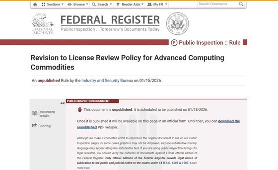アメリカ商務省の産業安全保障局(BIS)が、中国およびマカオ向けの高度なコンピューティング半導体の輸出に関する新たな規則を2026年1月15日付けで公開しました。この規則で、これまで特定の半導体輸出に対して適用されていた「拒否の推定」という方針が、「条件を満たす場合にはケースバイケース(個別)の審査を行う」方針へと緩和されています。