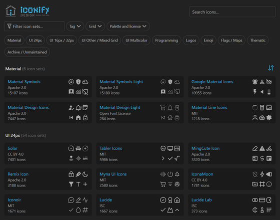 インターネット上に多数存在するオープンソースのアイコンを、用途や種類に応じて分類してまとめてくれるアイコンライブラリが「Iconify」です。作者はフリーランスの開発者であるVjacheslav Trushkin氏で、同氏はIconifyを始めた理由を「開発者にアイコンを選択する自由を与えるため」と説明しています。