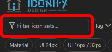 Iconifyの画面右上には検索バーがあり、自由にアイコンセットを検索できます。
