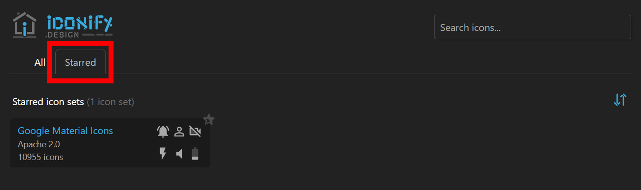 お気に入り登録したアイコンセットは画面上部の「Starred」からいつでもチェック可能。