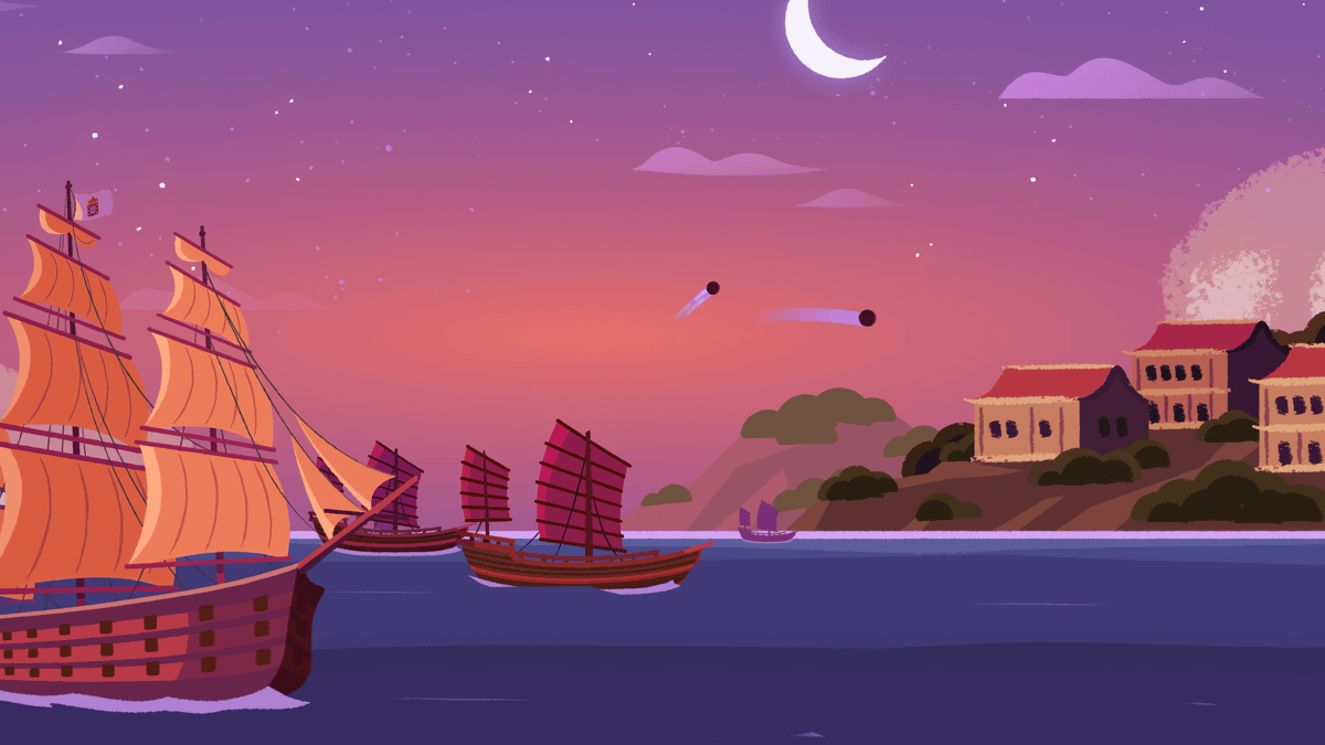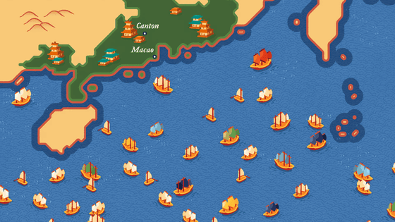 18世紀後半からイギリスとのアヘン貿易が始まりますが、このころ清の政治腐敗が進み、広州はほとんど野放し状態になっていました。政府の影響力は弱まり、貿易船を狙う海賊が横行していました。