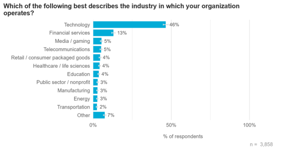 勤務先の職種は、テクノロジー企業が46%で、ファイナンシャルサービスが13%。