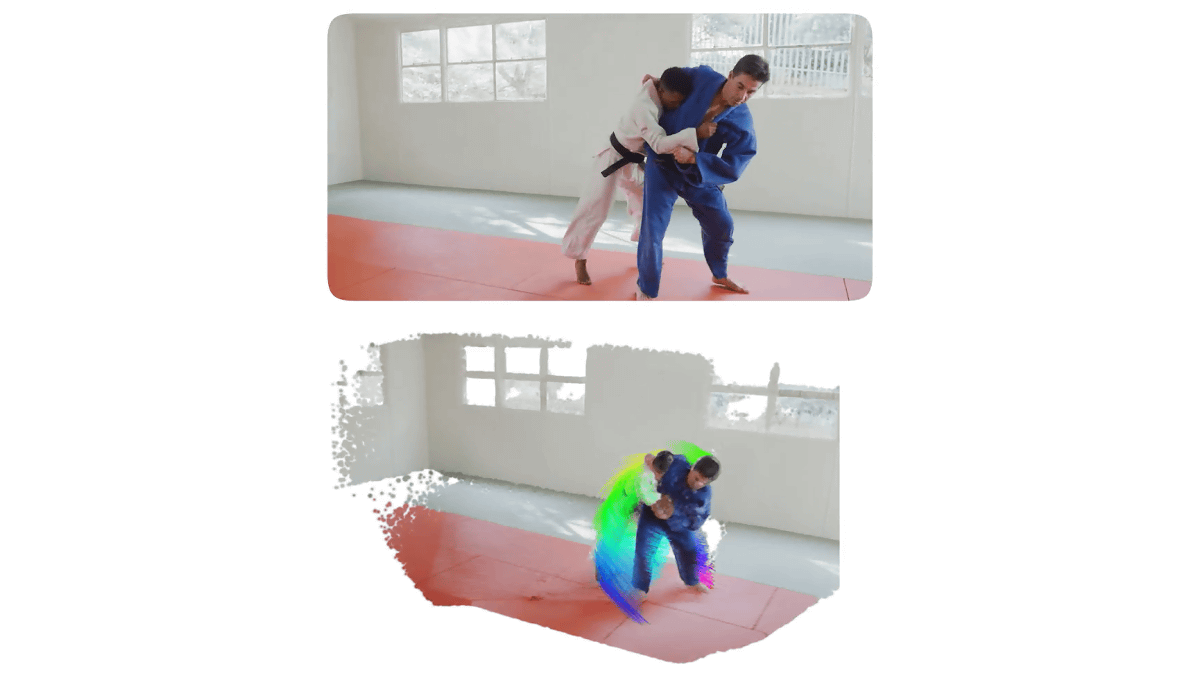 D4RTはカメラで記録した映像をもとに3次元空間を構築し、すべてのオブジェクトのすべてのピクセルを時系列に沿って認識可能です。
