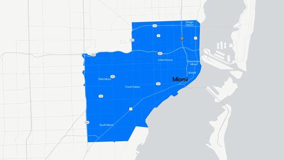 サービス提供エリアは、まずはマイアミのビジネス街であるブリッケルやダウンタウン、デザイン地区といった海沿いから西側に広がるリトル・ハバナ、コーラル・ゲーブルズ、ウエスト・マイアミ、サウス・マイアミまでの区域となっていて、近いうちにマイアミ国際空港へも拡大予定です。