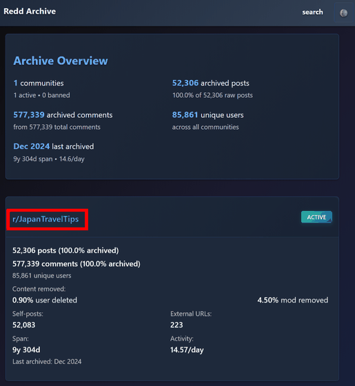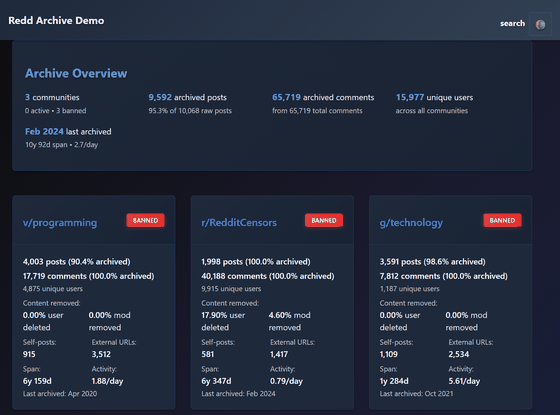 世界最大級のコミュニティSNSであるRedditは2005年に始まり、2024年12月時点で23.8億件もの膨大な投稿が蓄積されています。これらの過去の全ての投稿をローカルに保存してオフラインで閲覧・全文検索可能にするツール「Redd-Archiver」が公開されています。