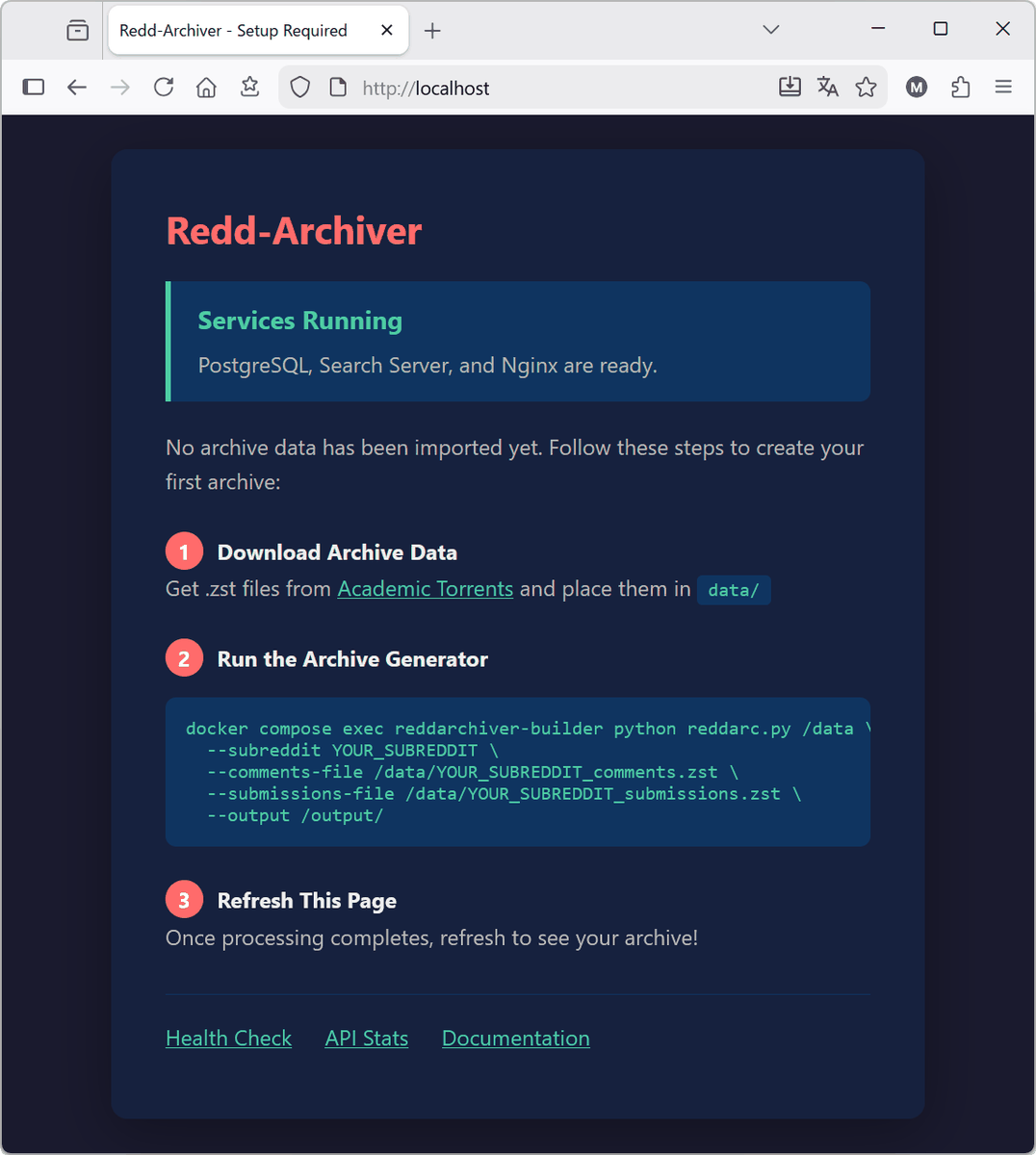 cd redd-archiver mkdir -p data output/.postgres-data logs tor-public