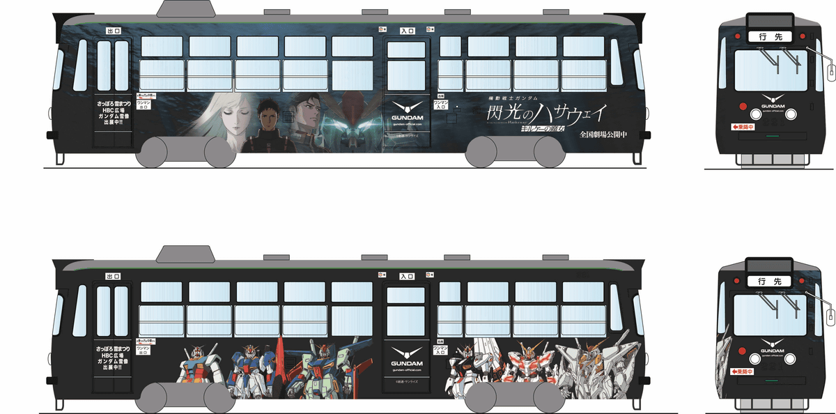 さっぽろ雪まつりにガンダムシリーズが3年連続・3回目の出展をするのに合わせて、札幌市電でラッピング電車「ガンダム号」が運行されることが発表されました。運行期間は2026年2月2日から2027年1月31日の予定です。