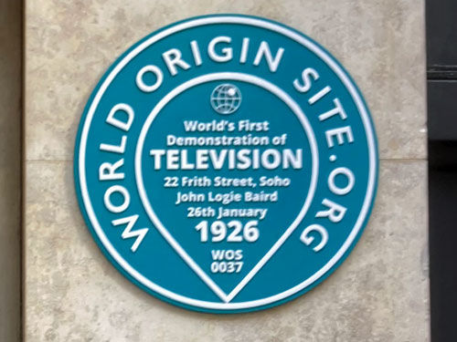 「テレビ発祥の地」を自称する土地には、イギリスのイースト・サセックスにあるヘイスティングスのテラスハウスや、ロンドン北部にある高級百貨店・セルフリッジズなどがありますが、決定的な瞬間は1926年1月26日にロンドンのソーホー地区フリス・ストーリートにあるイタリアンカフェで、ジャーナリスト向けに行なわれたデモンストレーションだそうです。このデモンストレーションを行ったのは、へレンズバラ出身の技師見習いだったジョン・ロジー・ベアード氏です。