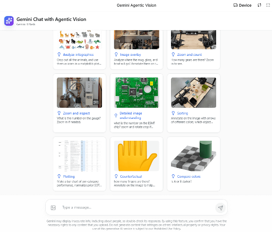 「コード実行を伴う画像理解」がどのような処理なのかは、Googleが用意した以下のデモを実行するとよく分かります。