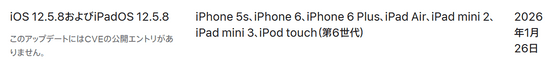 2026年1月26日、Appleが複数のセキュリティアップデートを実施しました。このうちの1つはiOS 12向けのアップデートで、対象となる端末には2013年9月に発売された「iPhone 5s」が含まれていました。